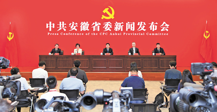 此次发布会以“衷心拥护‘两个确立’、忠诚践行‘两个维护’”为主题,人民日报、新华社、中央广播电视总台、香港大公文汇传媒集团等16家境内外媒体参加。媒体记者围绕贯彻长三角一体化发展国家战略、推进 “一改两为”工作、打造新兴产业聚集地、落实“双碳”战略、实施十项暖民心行动、保障国家粮食安全、打造科技创新策源地、高新技术产业发展等方面依次提问。郑栅洁、王清宪、程丽华、张红文逐一作答,详细介绍了党的十八大以来,安徽深入贯彻落实习近平总书记重要讲话指示批示和党中央决策部署的有关情况,各级党组织和党员干部群众感恩奋进、砥砺前行的精神面貌,新时代各项事业取得的显著成效,新征程接续奋斗的生动实践。(记者 朱胜利)