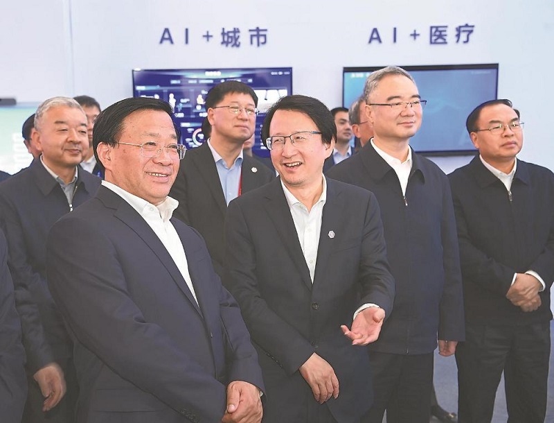 4月26日上午,第二届中国(安徽)科技创新成果转化交易会开幕式在合肥举办。开幕式前,省委书记韩俊、省长王清宪、省政协主席唐良智、科技部副部长吴朝晖等与出席大会的国家部委、央企负责人、两院院士及有关嘉宾,共同考察展馆。记者 杨 竹 程 兆 摄