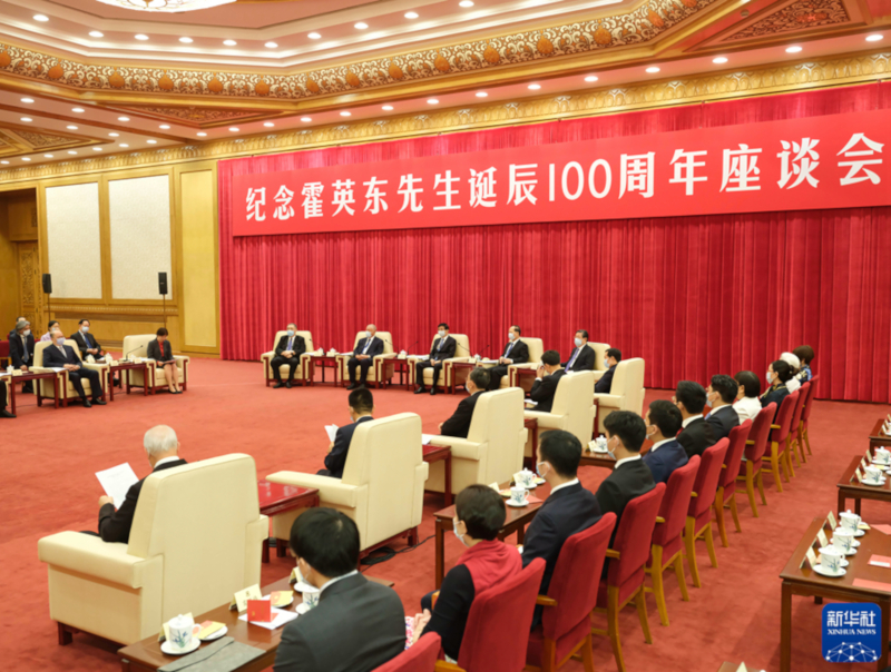 中共中央政治局委员、中央统战部部长石泰峰在座谈会上缅怀了霍英东先生的光辉一生,强调要学习他爱国爱港的赤子情怀、敢为人先的宝贵品格、永不言弃的斗争精神,锐意进取、开拓创新,为全面建成社会主义现代化强国、以中国式现代化全面推进中华民族伟大复兴而团结奋斗。