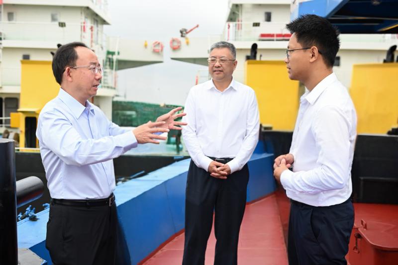 孟景伟来到中兴船舶,察看舾装码头、生产基地,与企业负责人深入交流,了解技术研发、产品订单、发展规划等情况。他强调,要统筹保护和发展,全力保障项目建设,大力支持企业扩规提质,做大做强临港产业。在洲头乡,孟景伟察看了金坝村葡萄长廊、泾洲渡民宿,强调要集中资源、集中力量发展高效设施农业,着力优结构、扩规模、塑品牌,更好带动村强民富;要整合盘活闲置资源,推动民宿集群化发展,做火做旺乡村旅游。