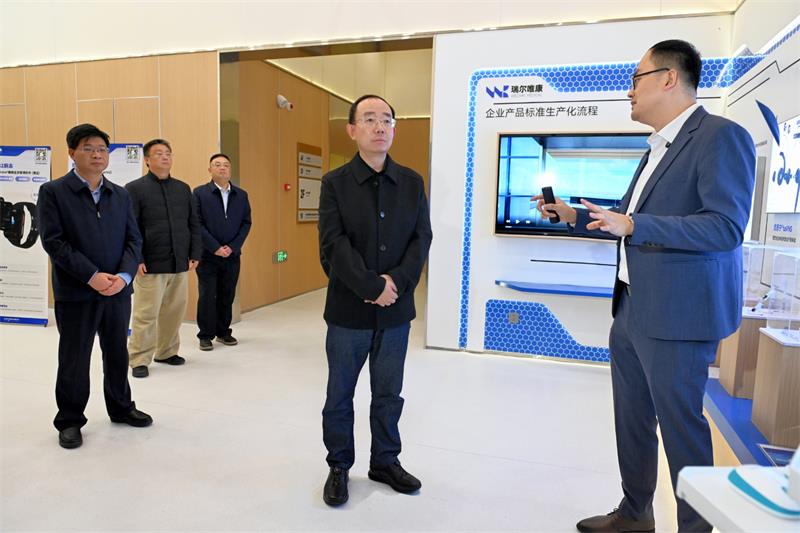入驻双生未来科技城的瑞尔唯康,专注脑科学领域的疾病诊断监测和治疗类产品的研发销售。孟景伟走进企业展厅和车间,了解产品技术、发展规划等情况,鼓励企业持续推进技术和产品创新,扎根安庆、做大做强。他强调,有关部门要精准对接企业需求,强化人才招引、场景应用等服务,助力企业发展。在双生谷公园,孟景伟察看石塘湖岸线环境,了解片区空间布局情况,要求尽快依法调整城市开发边界,为双生谷开发建设提供空间保障。