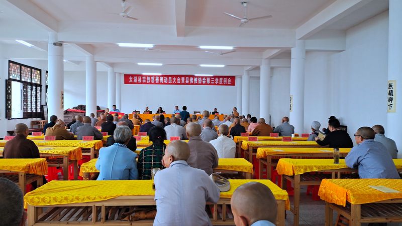 9月26日,太湖县在西风禅寺组织召开2020年宗教慈善周动员大会暨县佛教协会第三季度例会。县佛教协会常务理事以上负责人、各寺庙负责人、居士代表共计七十余人参加会议。会议由县佛教协会会长主持,县委统战部(民宗局)有关负责同志到会指导。
